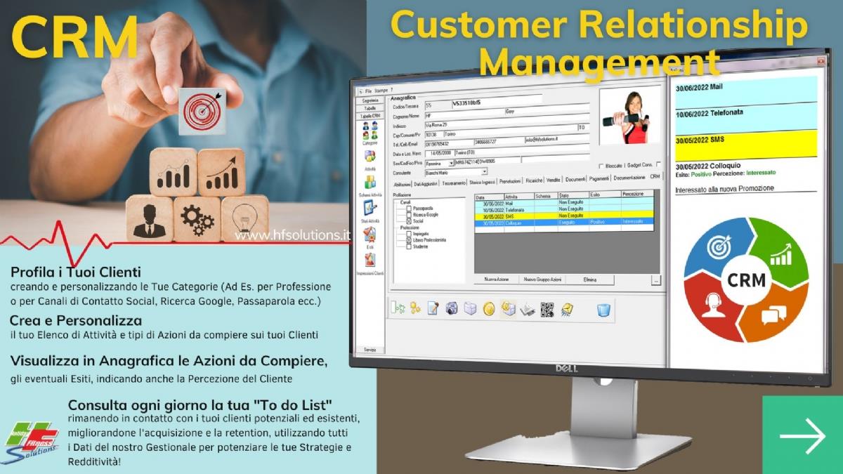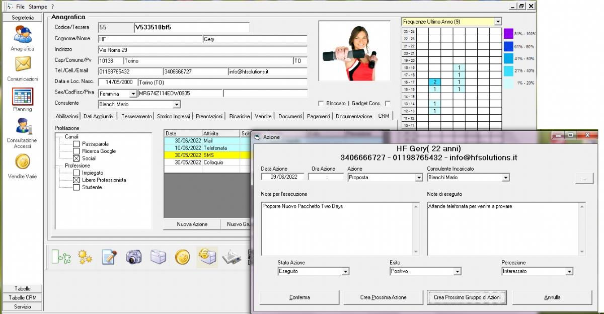 Consulta ogni giorno la tua "To do List", rimanendo in contatto con i tuoi clienti potenziali ed esistenti, migliorandone l'acquisizione e la Retention, utilizzando al meglio tutti i Dati del nostro Software Gestionale e di Controllo Accessi, per potenziare le tue Strategie e Redditivit!