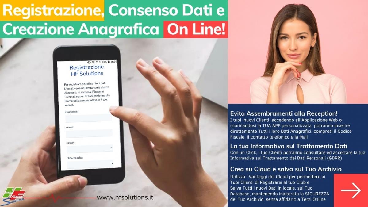Utilizza i Vantaggi del Cloud per permettere ai Tuoi Clienti di Registrarsi al tuo Club e Salva Tutti i nuovi Dati in locale, sul Tuo Database, mantenendo inalterata la SICUREZZA del Tuo Archivio, senza affidarlo a Terzi Online
