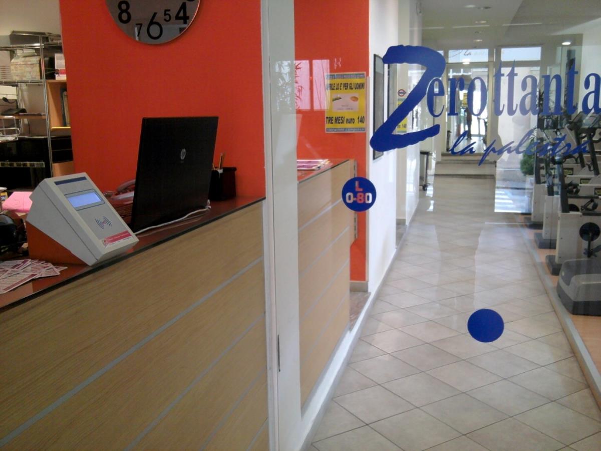 Controllo Accessi per Palestre, presso Palestra di Asti, con lettore di Prossimit e Diplay, collegato al Bancone della Reception e all' apertura della porta scorrevole